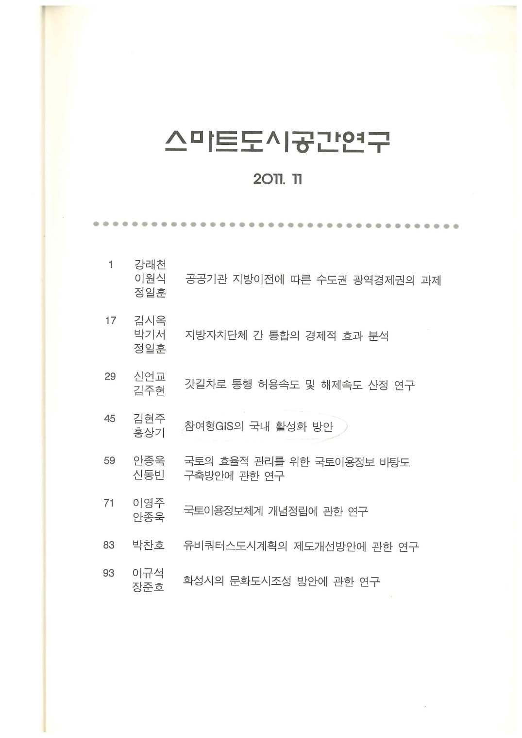[스마트도시공간연구] 2011년 (제8호) 페이지 정보 작성자 스마트도시공간연구소 작성일 23-05-31 13:12 조회 234회 본문 이전글[스마트도시공간연구] 2012년 (제9호) 다음글[수도권연구] 2010년 (제7호) 목록